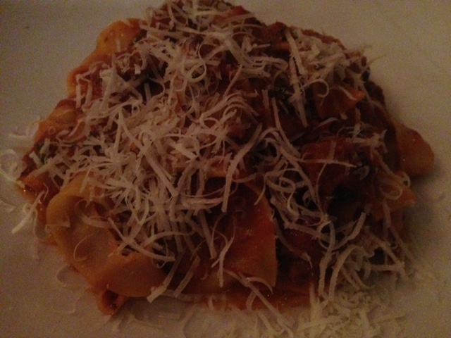 To say the scallops were delicious doesn’t really come close — I would say this is one of my favourite servings —of one of my favourite starters….Caramelised scallops, pea puree, prosciutto crisp, radish and baby herbs – Yum, Yum, Yum!!! I had to follow the Seafood linguine with a spicy chilli and garlic sauce with a lovely grating of fresh parmesan on top.