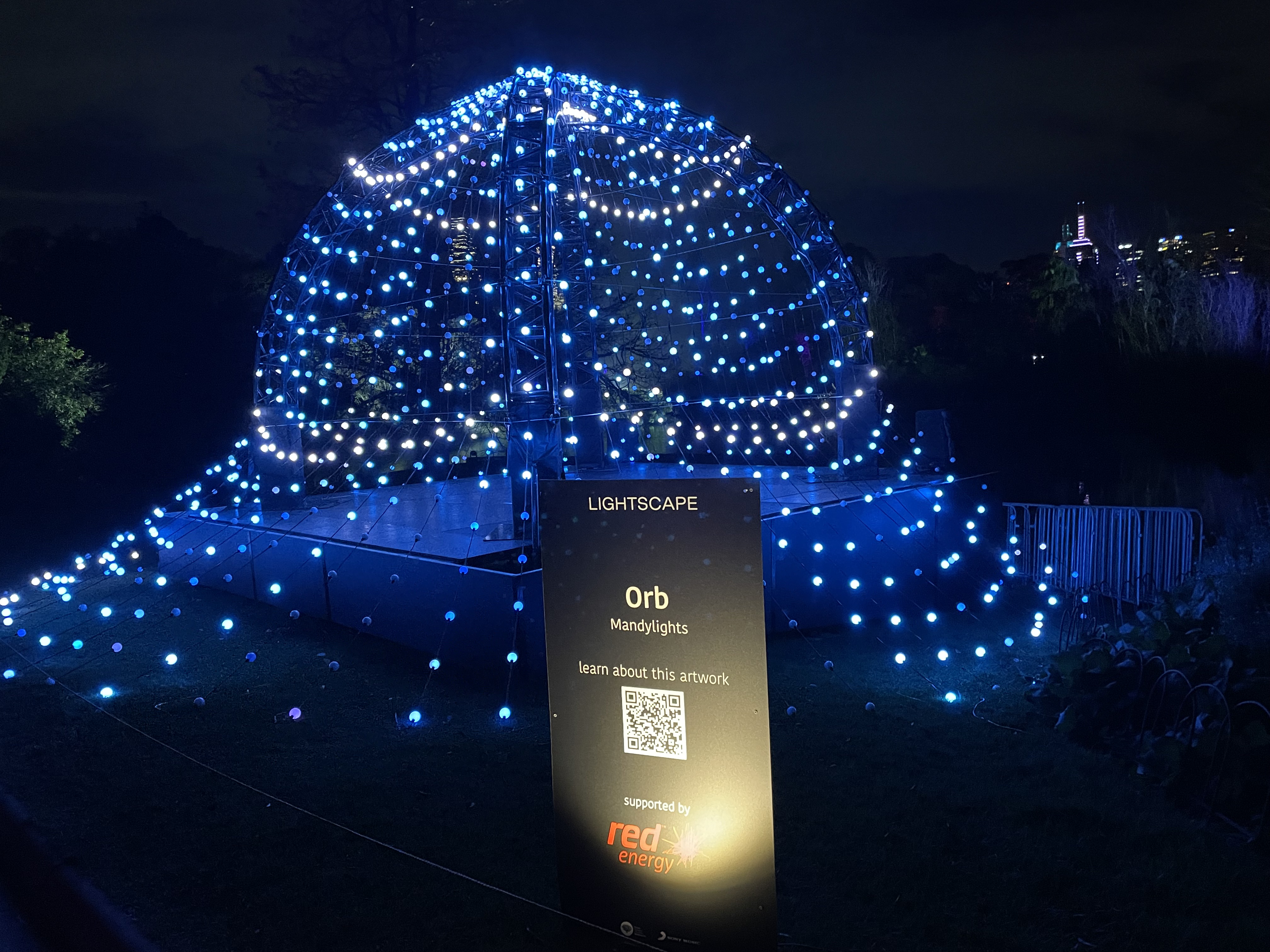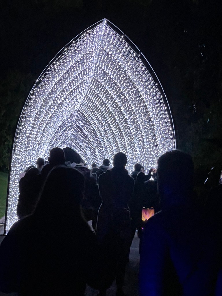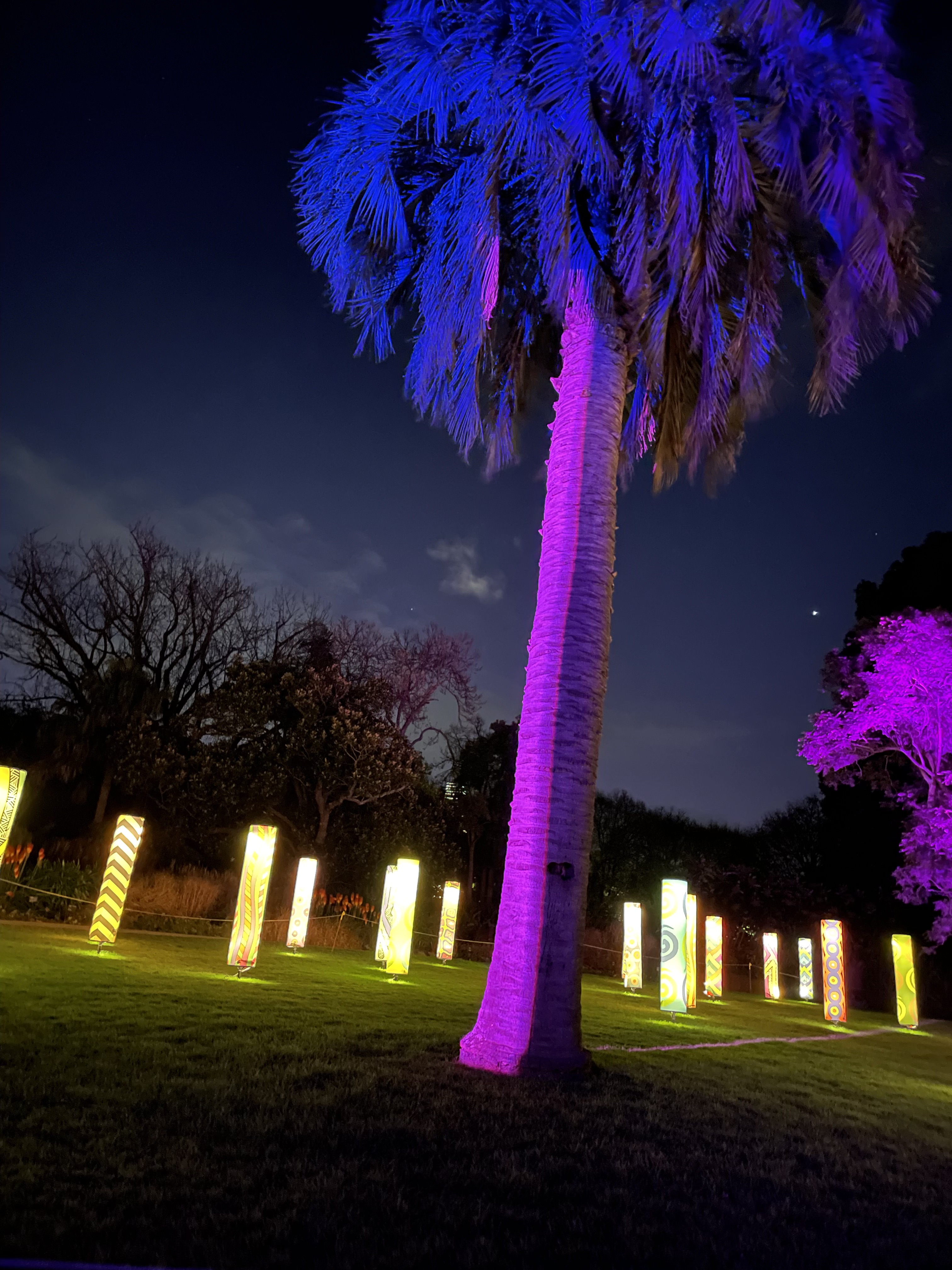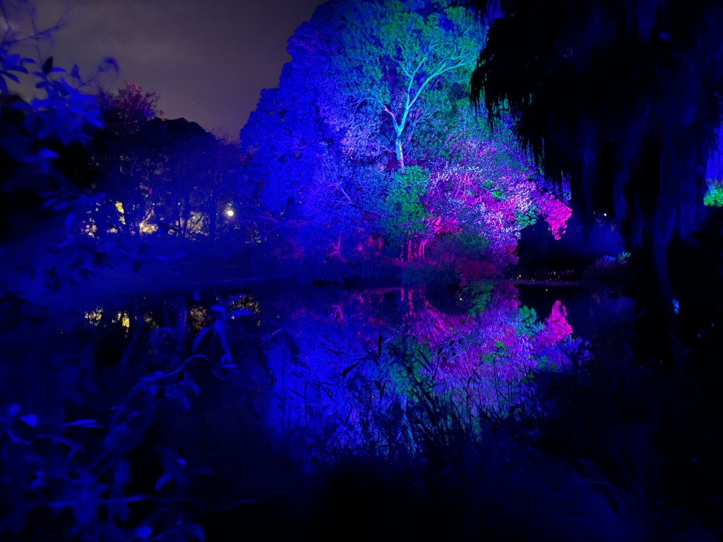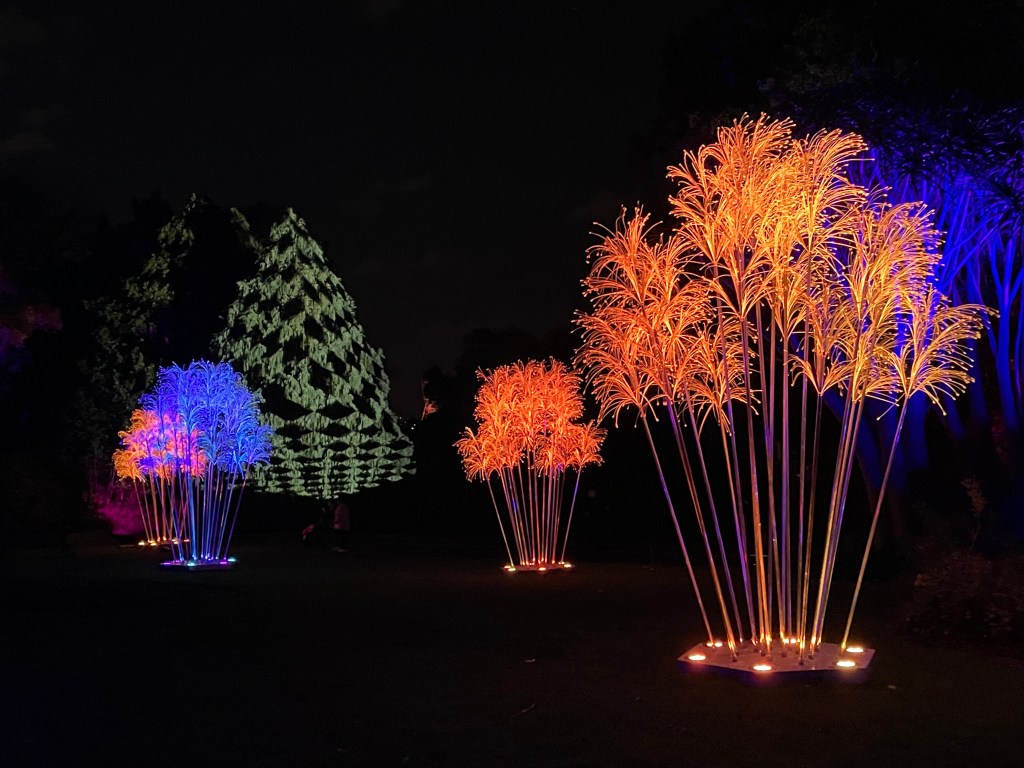 Two months ago I purchased tickets to attend Lightscape as an intrigued person I felt certain it would be a good event, though I had no idea how good. Upon arrival everything worked, first tick. There were food trucks, ticket readers with designated lanes to enter. Fabulous stops enroute walking through the magical forest with a mystical ghost tree with ever changing music in the moonlight from Soul, classical, ethereal style to music that could easily be at home on a Disney set. (Royal Botanical Gardens Melbourne).